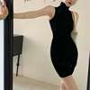 Fleepmart Summer Sexy High Neck Tight Dress Oversleeve Pleated Bottom Wrapped Hip Dress Women BodyconThere are no reviews yet