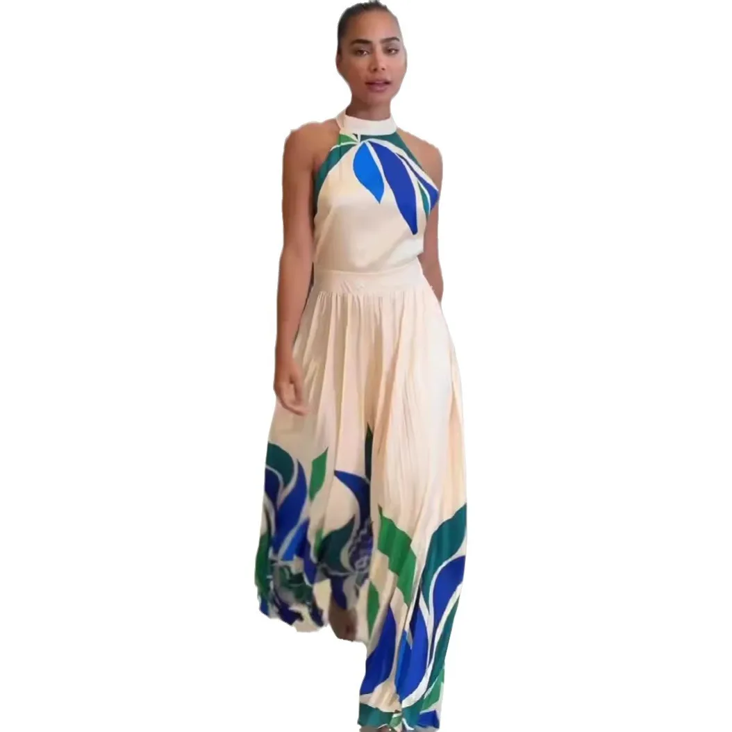 Fleepmart Summer Sexy Women Print Jumpsuit Streetwear Wide Leg Pants Rompers Slim Backless Sleeveless