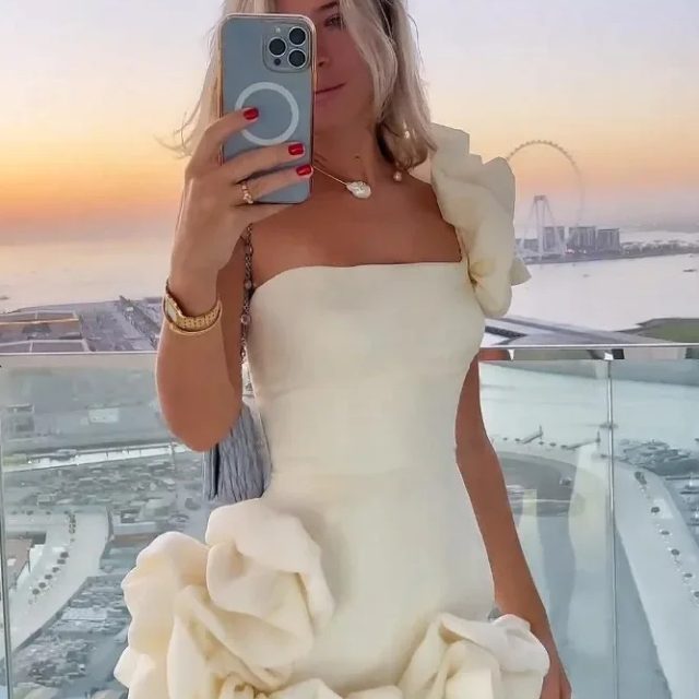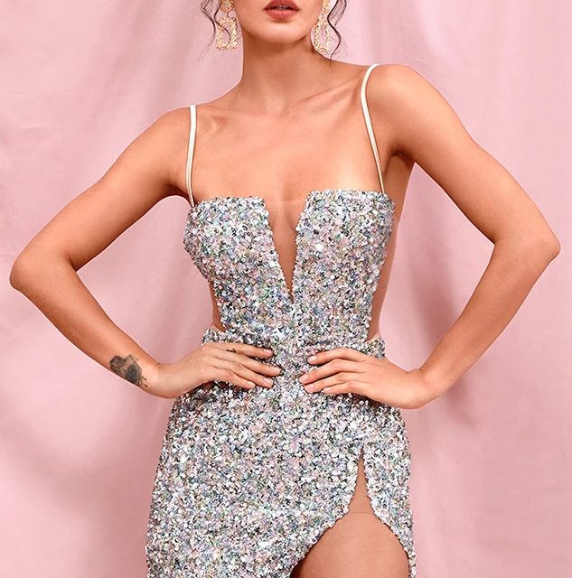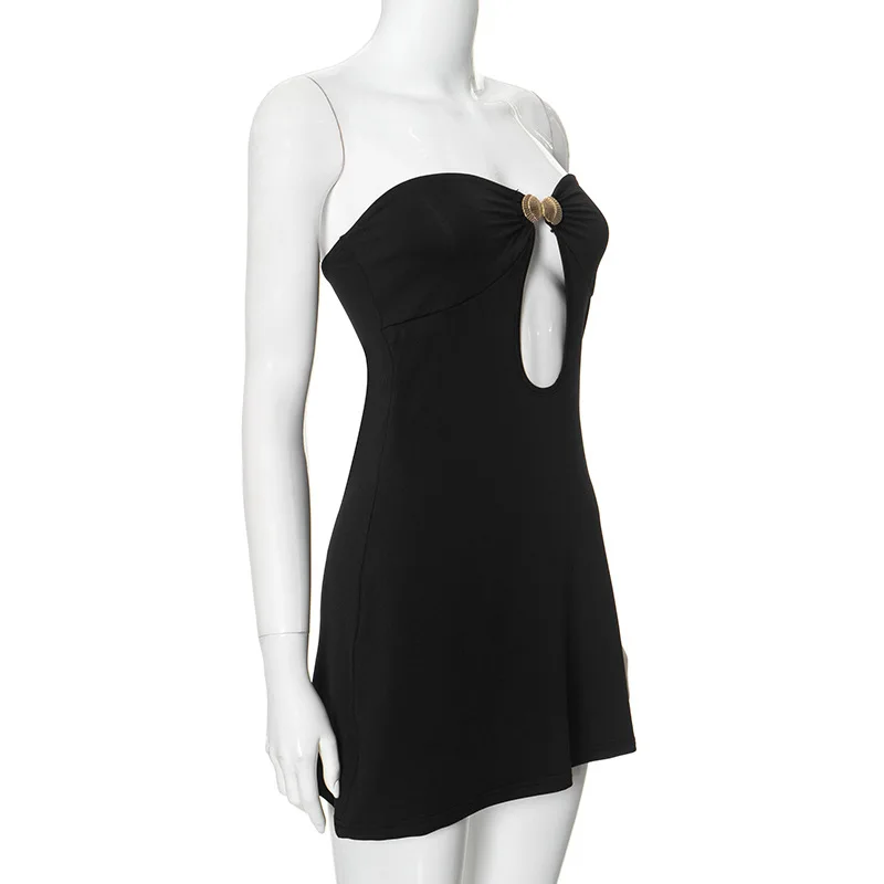 Fleepmart Summer Strapless Metal Decoration Beach Women’s Sleeveless Hollow Out Slim Backless Mini Wrap Dress