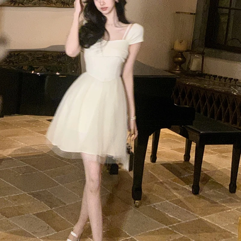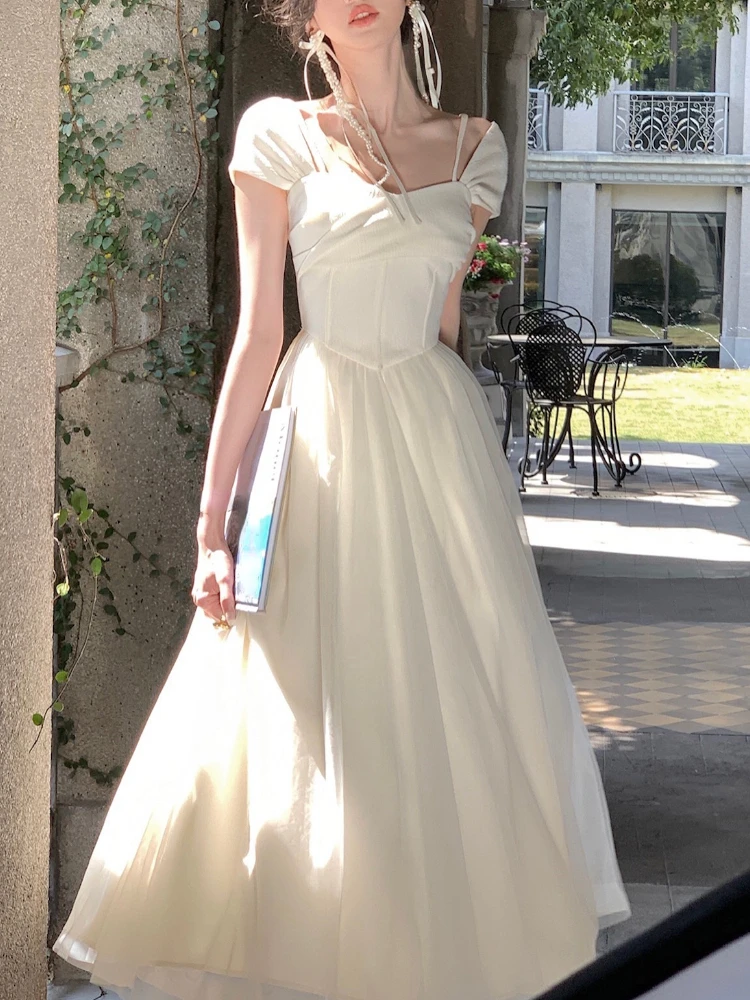 Fleepmart Summer Sweet Elegant Fashion Party Dress Women Casual Even Prom Formal Solid Midi Vestidos Chic A-Line Female Clothes Robe