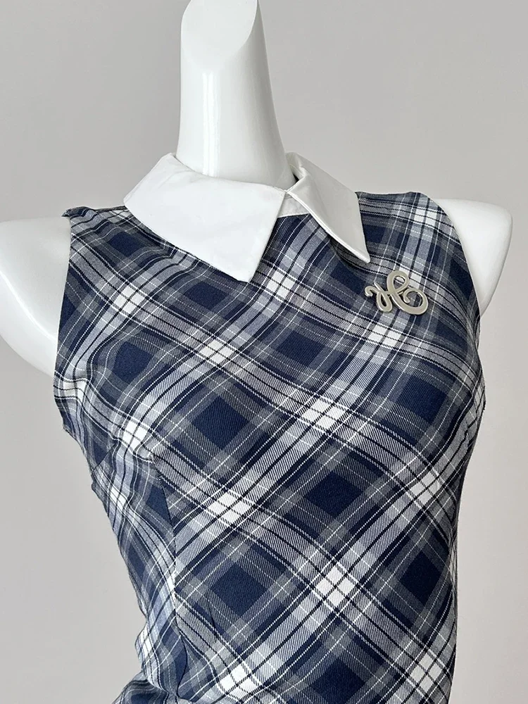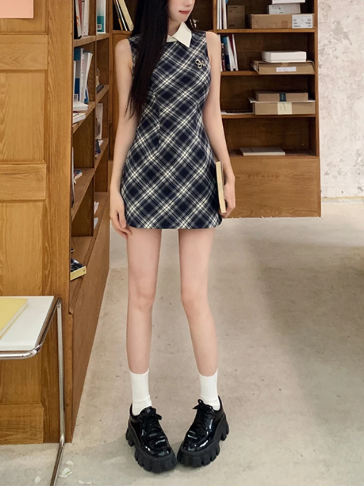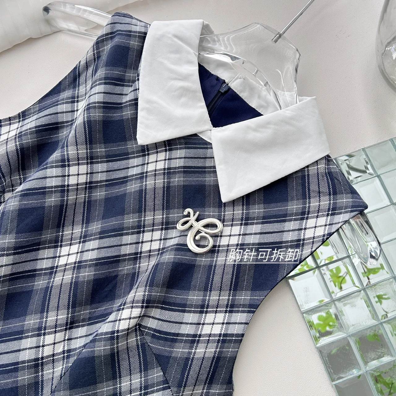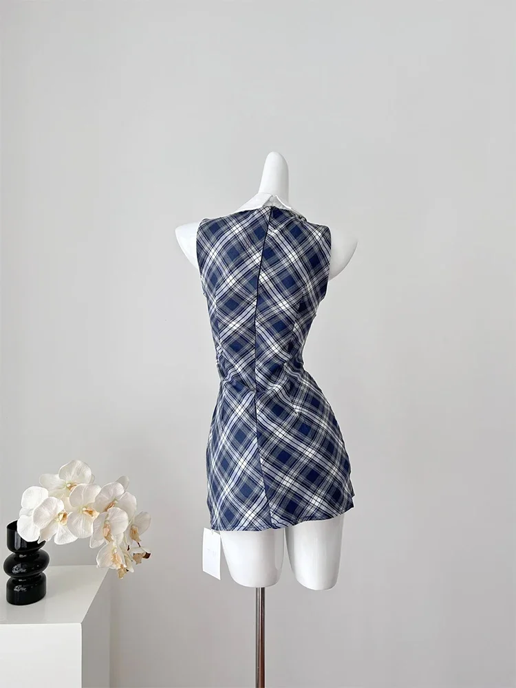 Fleepmart Summer Sweet Print Plaid Dress Women Elegant Sexy Sleeveless Strap Dress Female Korean Fashion Design Kawaii Lace Dress 2024 New