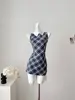 Fleepmart Summer Sweet Print Plaid Dress Women Elegant Sexy Sleeveless Strap Dress Female Korean Fashion Design Kawaii Lace Dress 2024 New