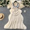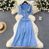 Fleepmart Summer Women Knitted Long Dress Brand Fashion Turn-down Collar A-line Sweater Dress Elegant Lady Office Dress Robe