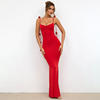 Fleepmart Summer Women Long Dresses Elegant Solid Color 3D Flower Decorated Straps Sleeveless Neck Wrap Maxi Evening Patry Dress