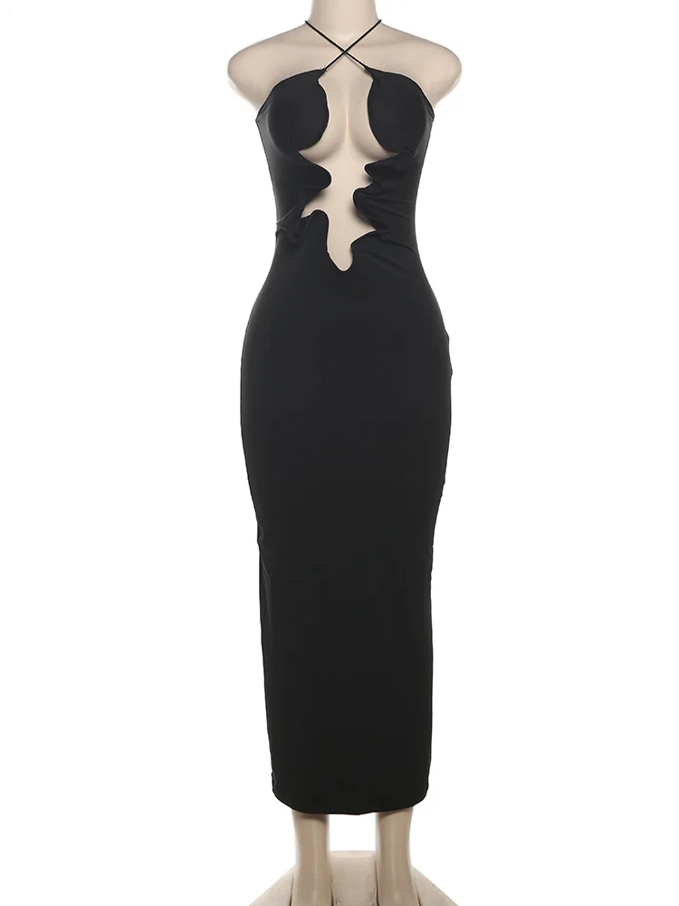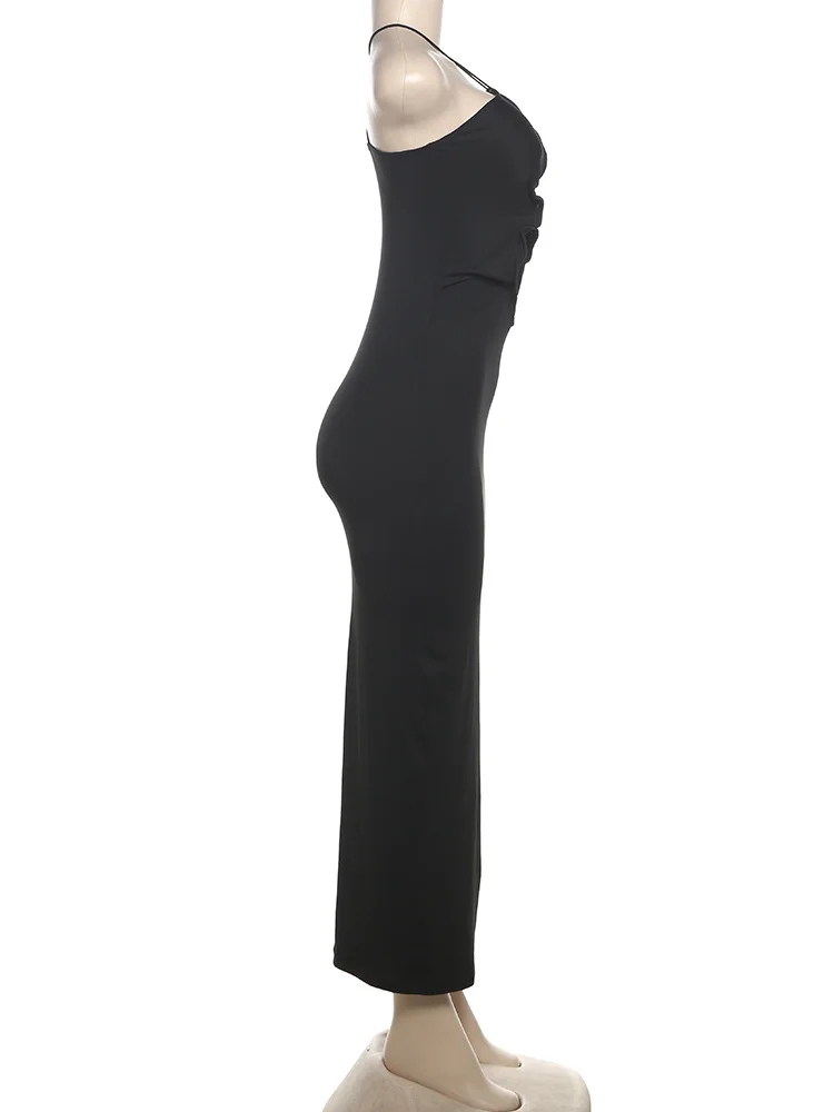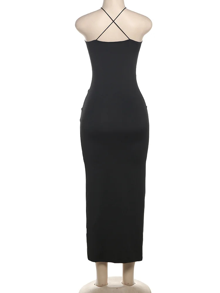 Fleepmart Summer Women Mid-Calf High Street Girl Solid Camis Sexy Cleavage Slim Body-shaping Vestido Robe