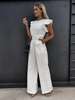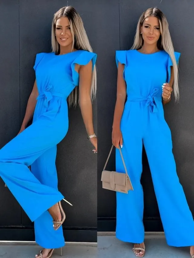 Fleepmart Summer Women’s Jumpsuits 2023 Elegant Belt Solid Overalls Woman Jumpsuit Casual O-neck Ruffles Office Lady Wide Leg Playsuits