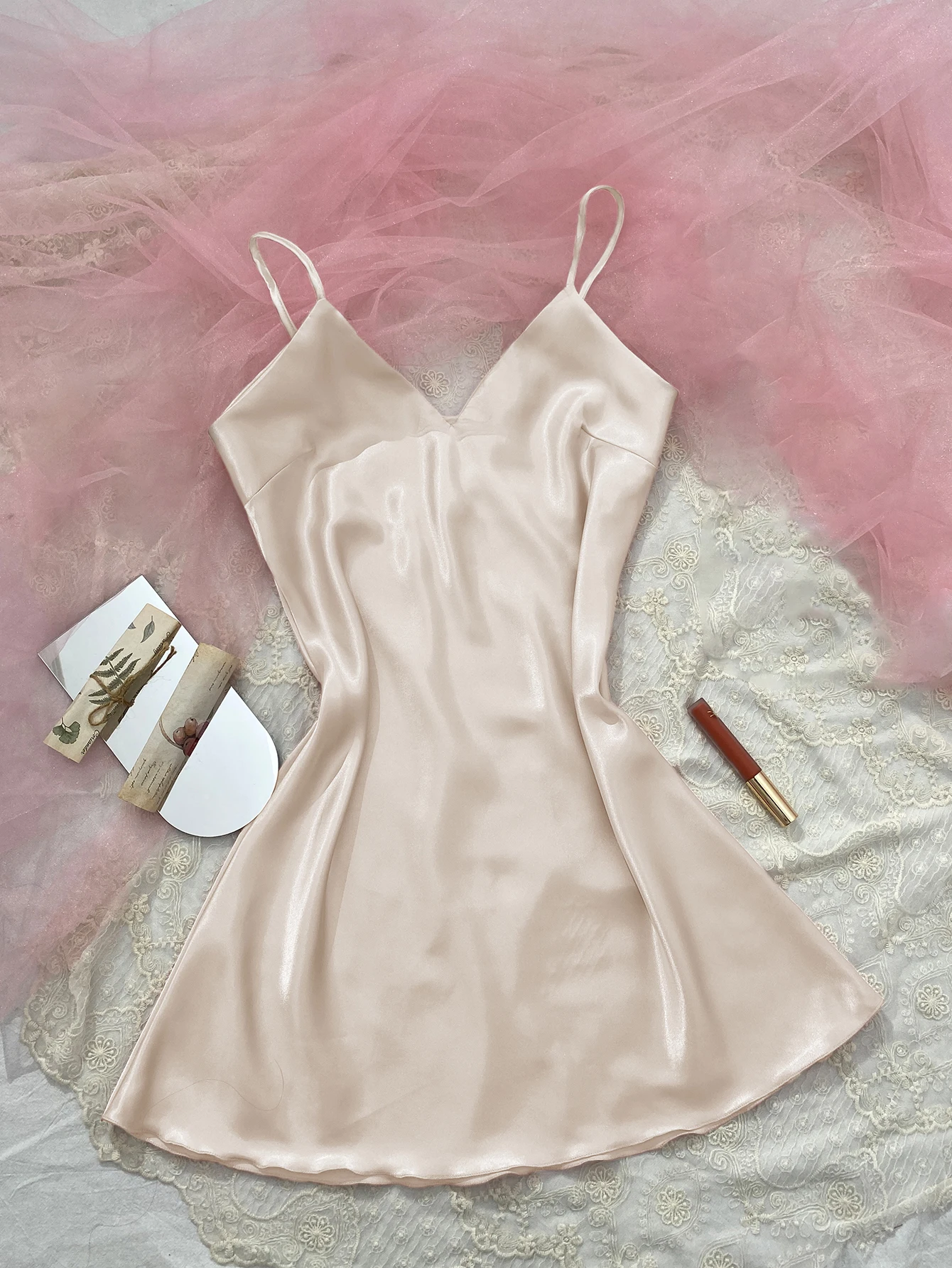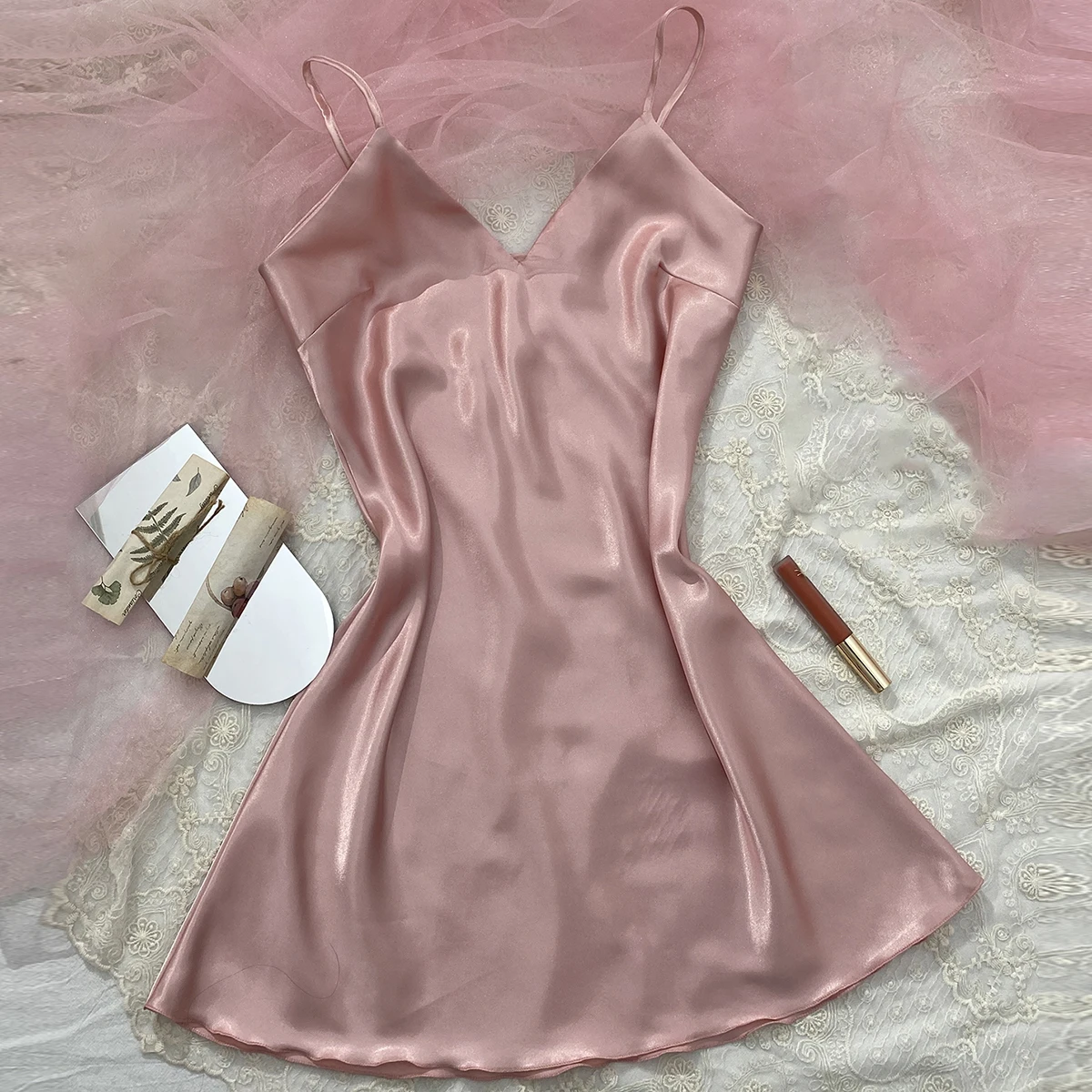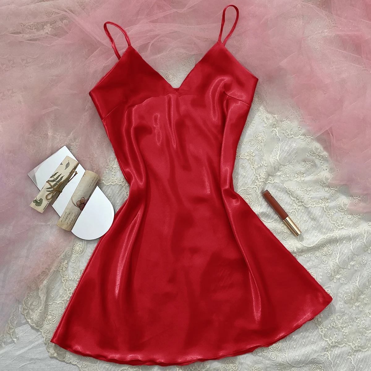 Fleepmart Summer Women’s Satin Sexy Sleepwear Female Silk Nightgown Sexy V-Neck Sling Nightdress Women Soft Home Dress