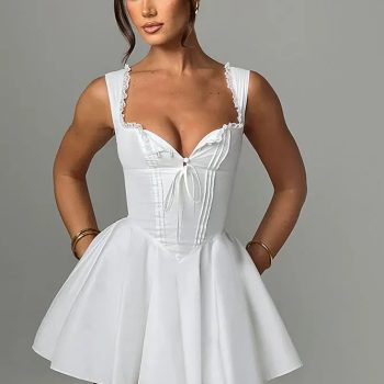 Fleepmart Summer Womens Short Sleeve Mini Dress Ladies Pleated Ruffle Solid Dresses Casual V Neck Vintage Loose VestidosThere are no reviews yet