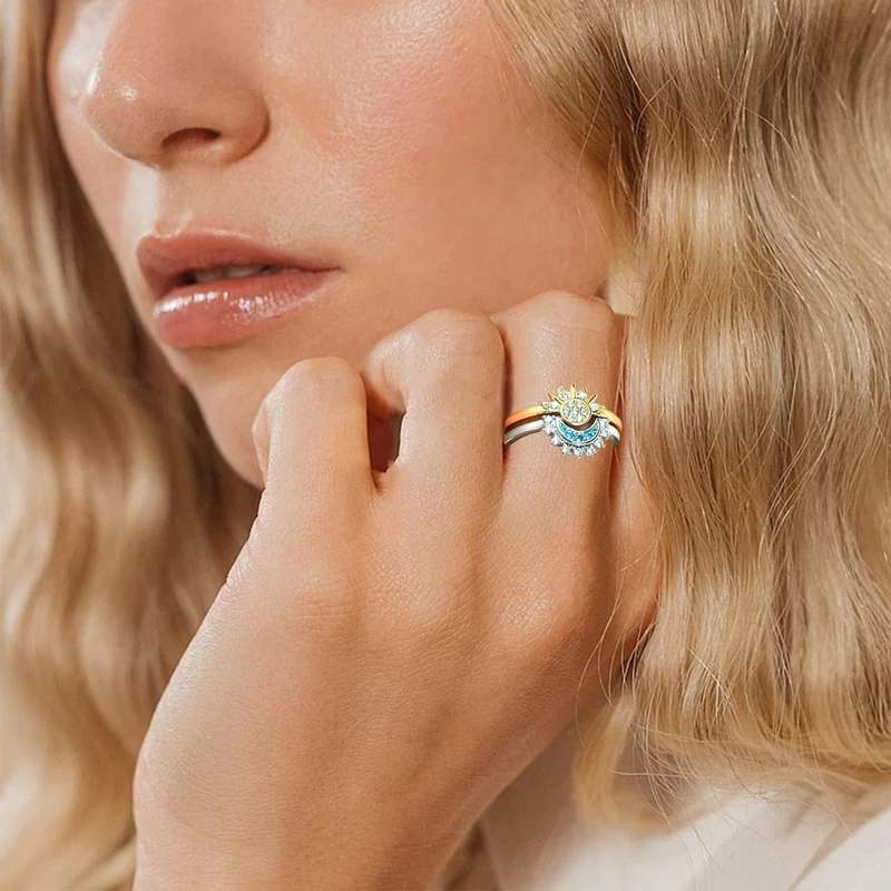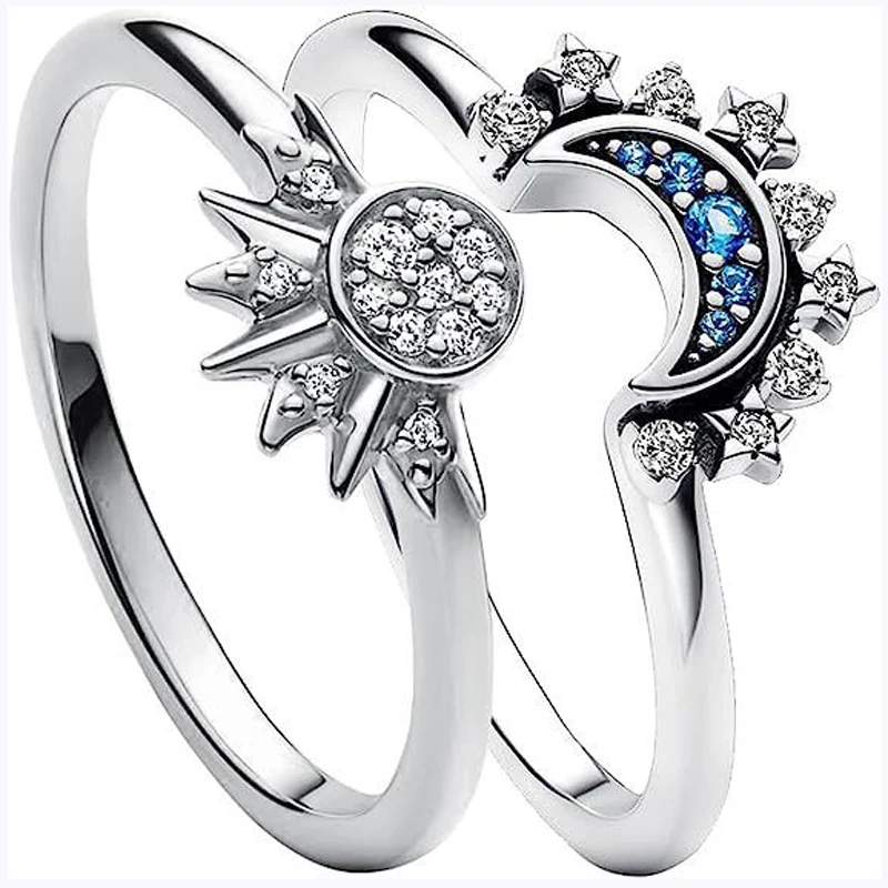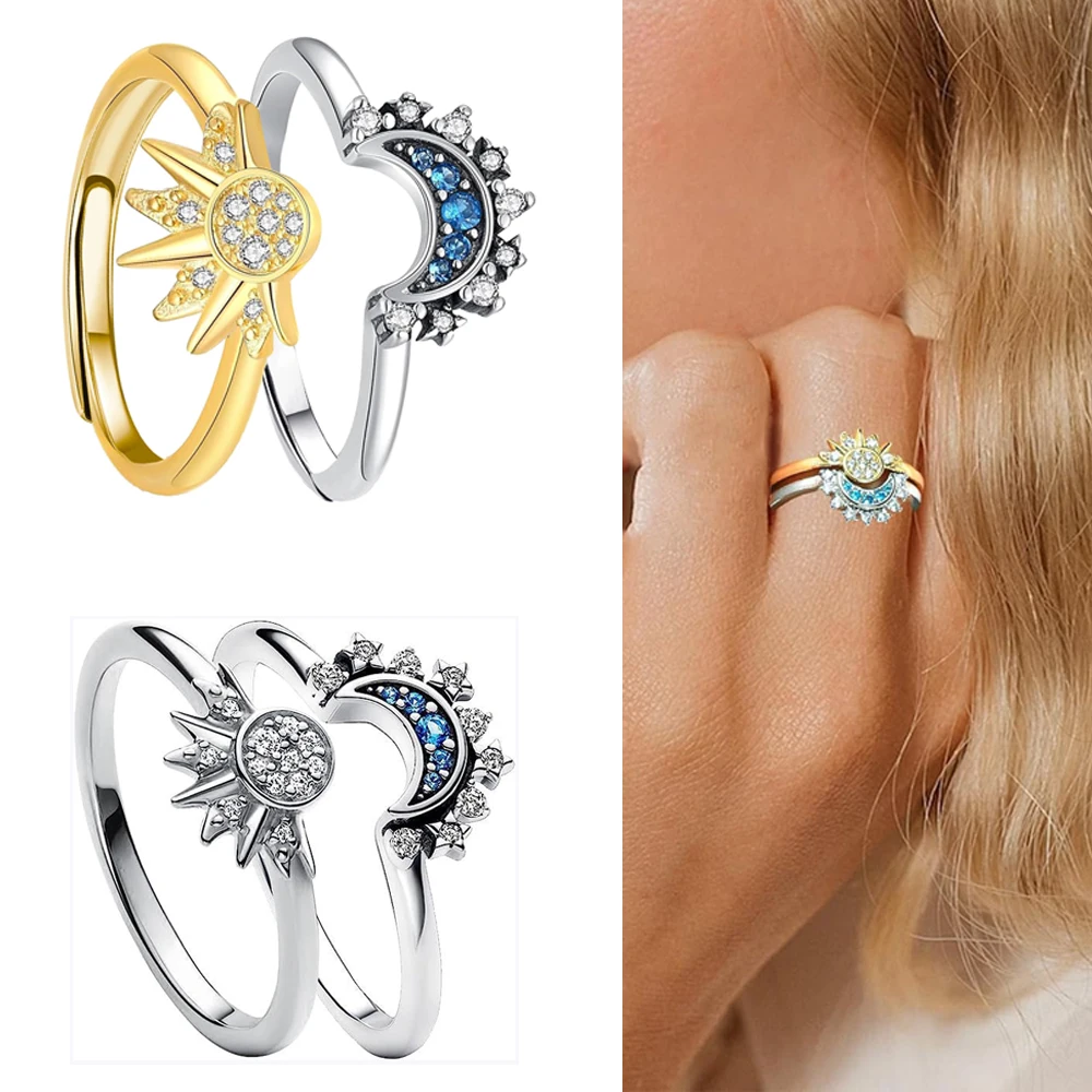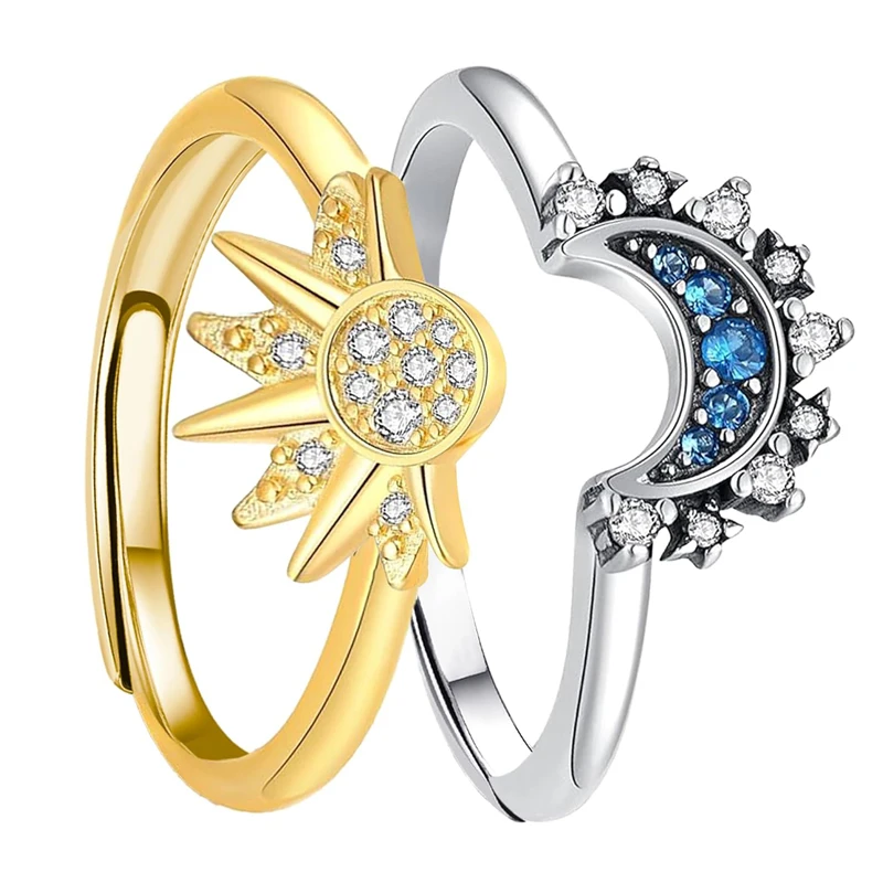 Fleepmart Sun and Moon Stackable Rings Set for Women Girls Adjustable Matching Rings Friendship Sister Valentines Day Couple Gifts