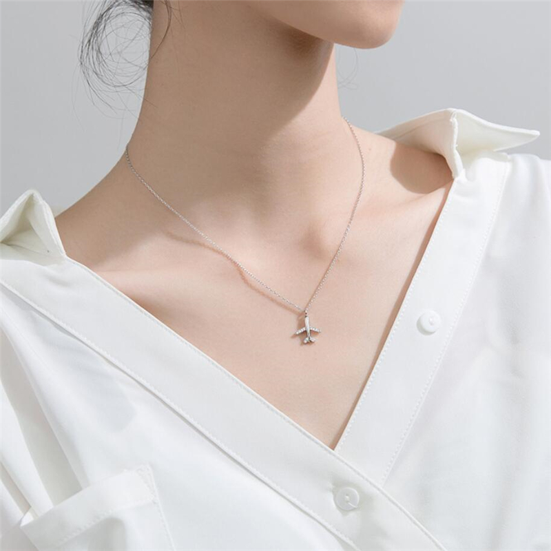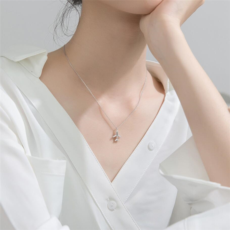 Fleepmart Sweet Cute Mini Plane Literary 925 Sterling Silver Clavicle Chain Female Necklace