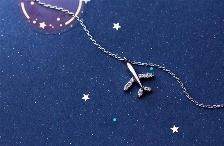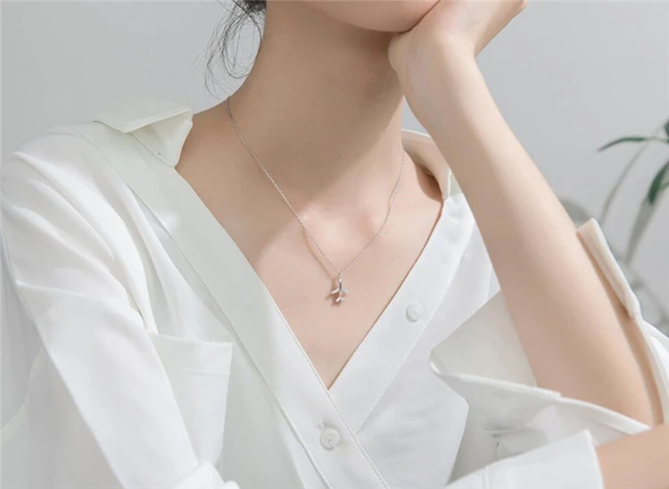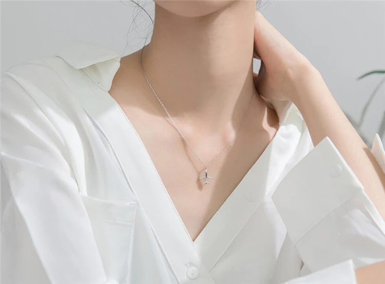 Fleepmart Sweet Cute Mini Plane Literary 925 Sterling Silver Clavicle Chain Female Necklace