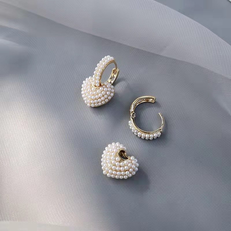 Fleepmart Sweet Full Pearls Inlay Heart Shaped Dangle Earrings For Women Luxury Peach Drop Earring Party Wedding Jewelry