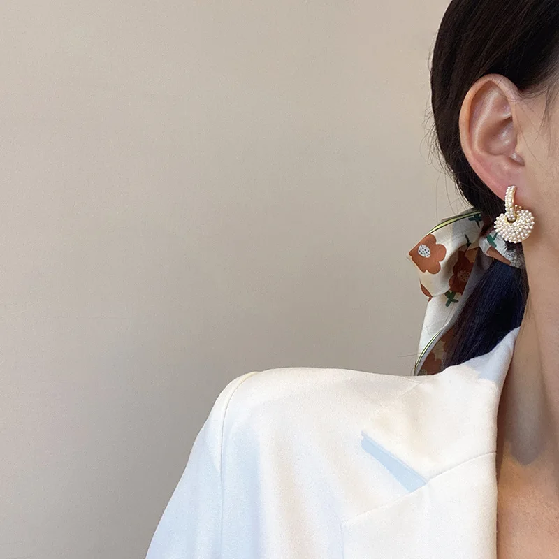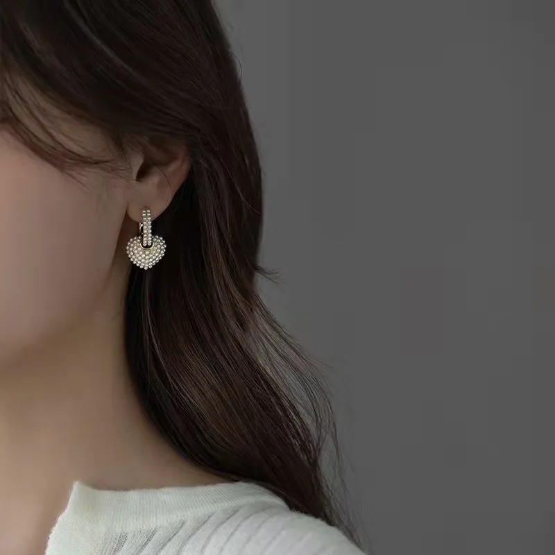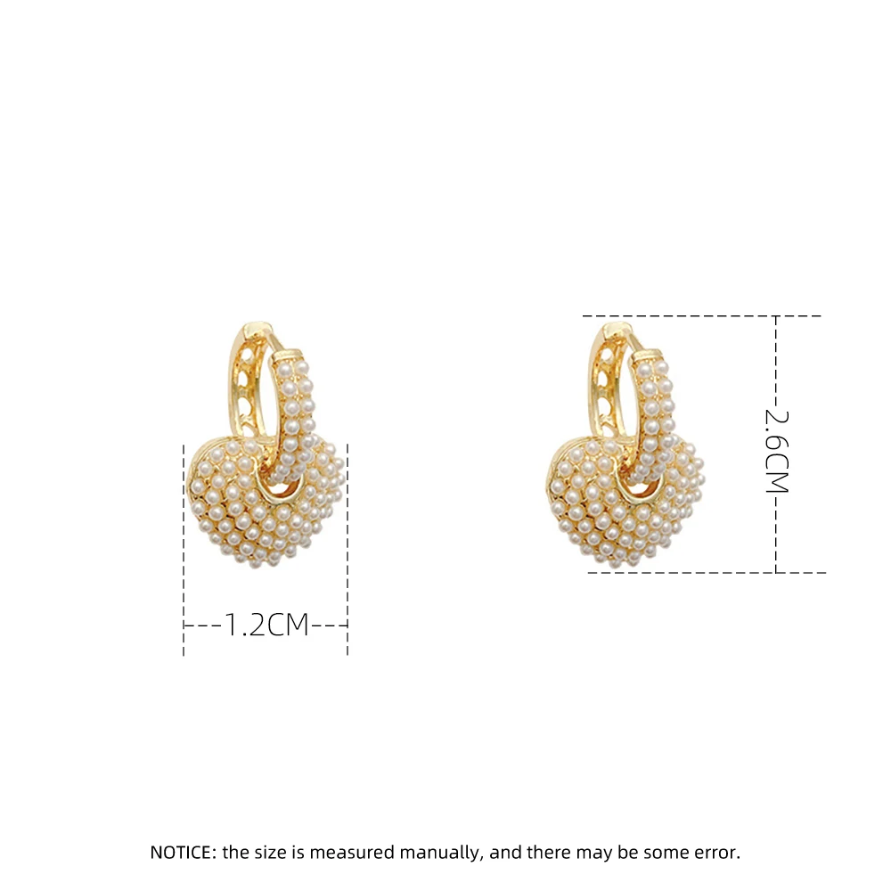 Fleepmart Sweet Full Pearls Inlay Heart Shaped Dangle Earrings For Women Luxury Peach Drop Earring Party Wedding Jewelry