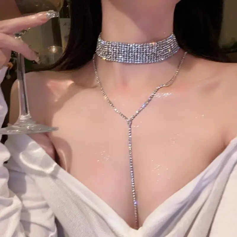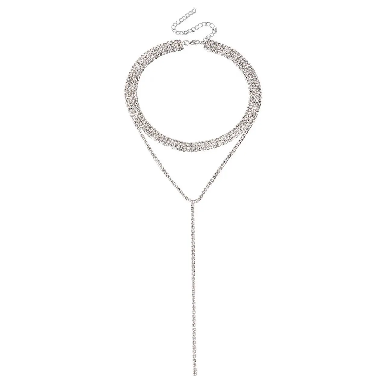 Fleepmart Temperament Sliver Shiny Zircon Tassel Collar Choker For Women Wedding Party Jewelry Gift Accessories