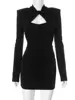 Fleepmart Tie Knot Shoulder Pads Short Women’s Hollow Out Long Sleeve High Waist Tunics Solid Black Party Dress Streetwear