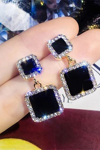 Fleepmart Trend Korean Black Square Rhinestone Earrings Fashion Crystal Geometry Female Pendant Earrings Jewelry