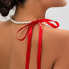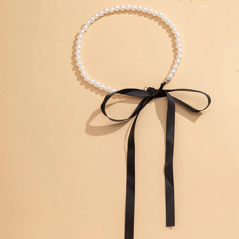 Fleepmart Trend Wedding Party Jewelry Long Black Ribbon Choker Necklace For Women Elegant White Imitation Pearl Beach Vacation Necklaces