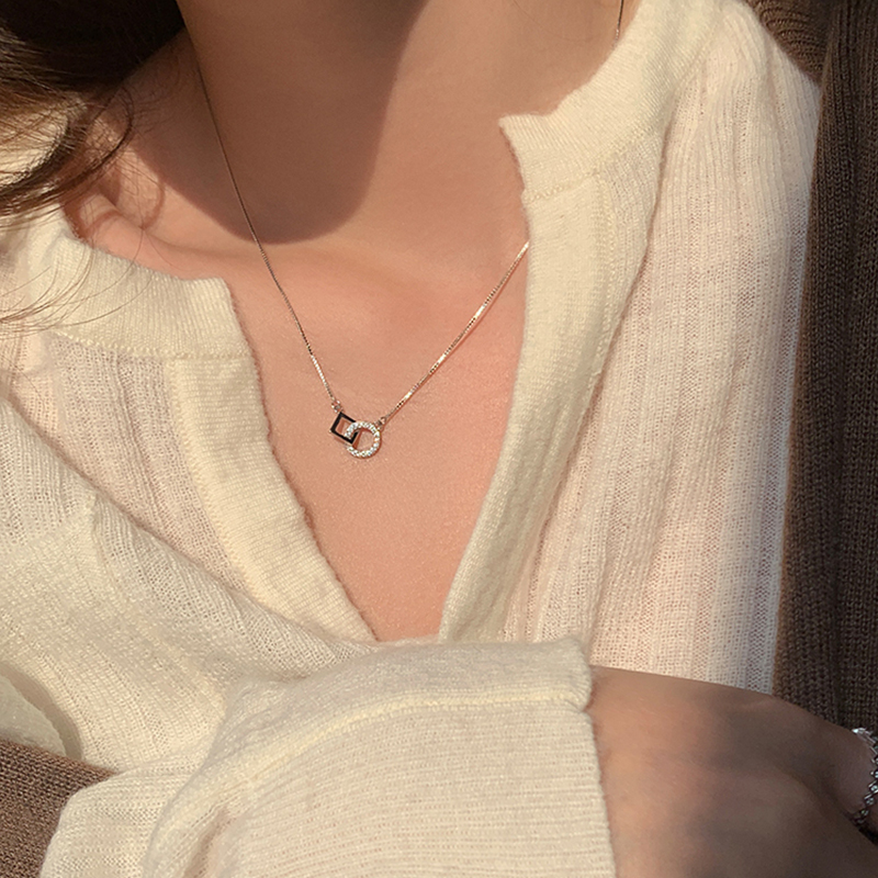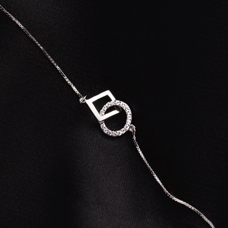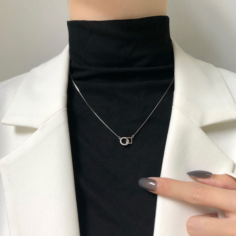 Fleepmart Trendy 925 Sterling Silver Square Round Necklace Cute Clavicle Chain CZ Zirconia Geometry Pendant Choker Girl Party Gift Jewelry