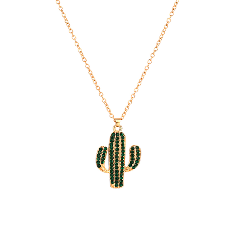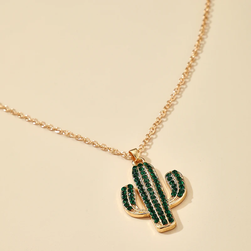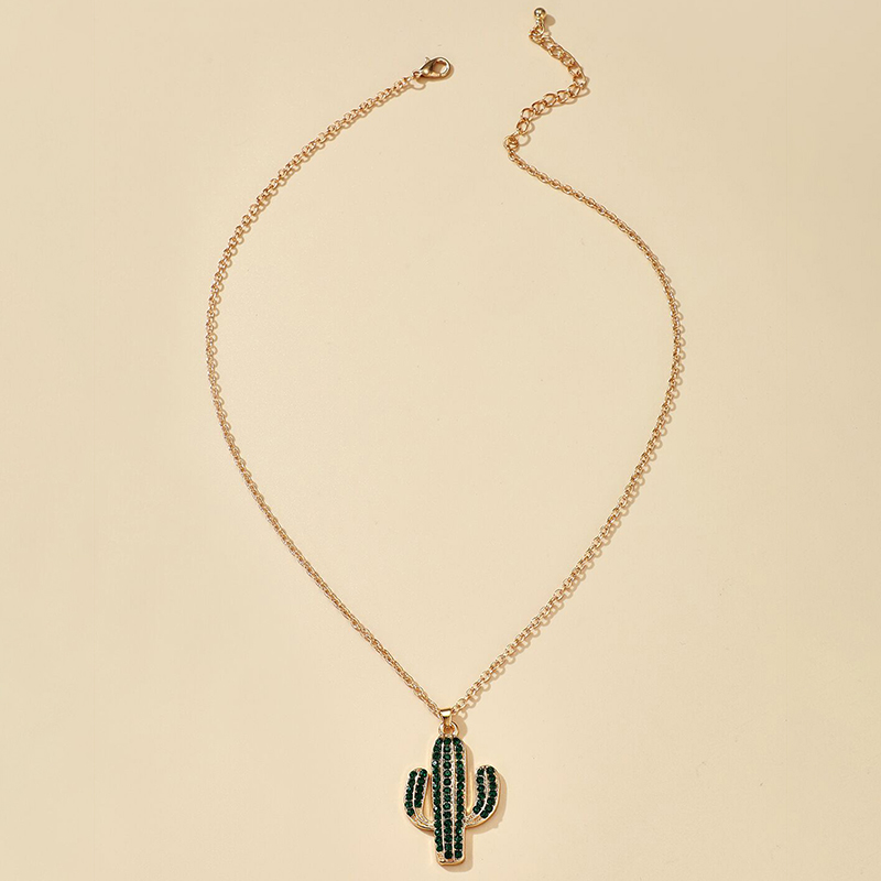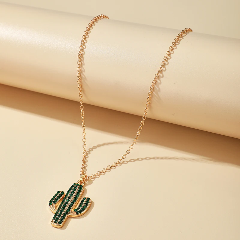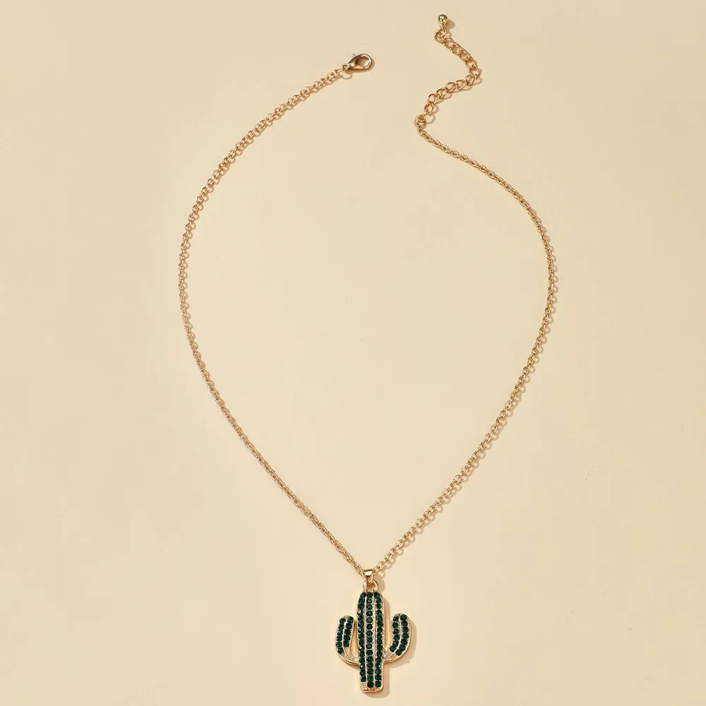 Fleepmart Trendy Cactus Pendant Necklace for Women Gold Color Alloy Metal Adjustable Bohemian Jewelry Gift Accessories