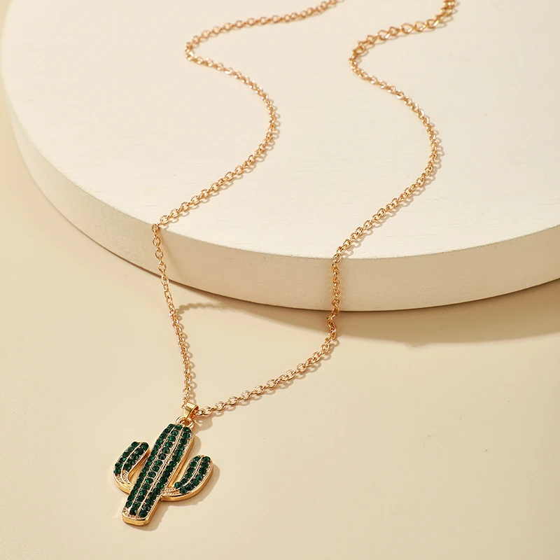 Fleepmart Trendy Cactus Pendant Necklace for Women Gold Color Alloy Metal Adjustable Bohemian Jewelry Gift Accessories