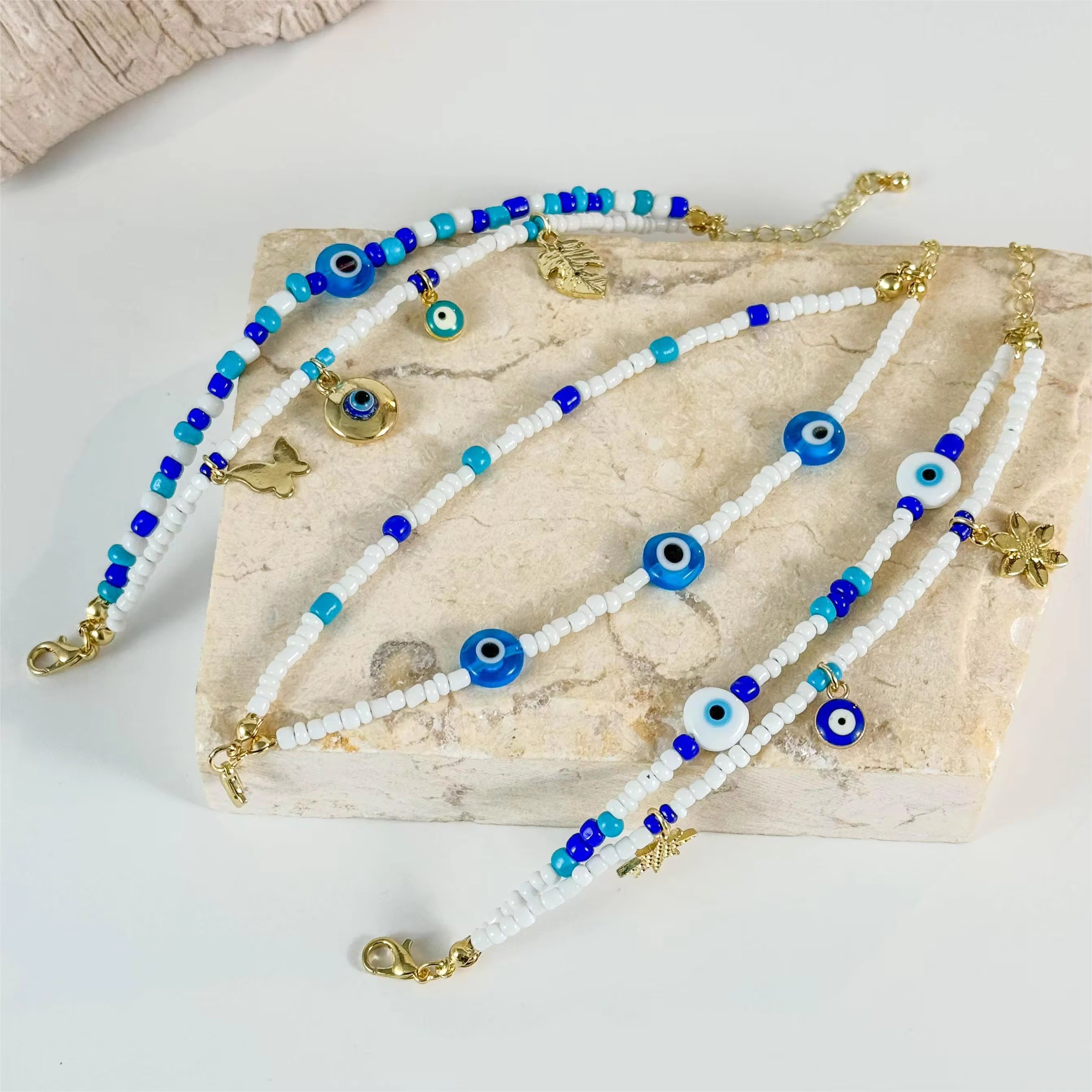Fleepmart Trendy Eye Flower Bracelets for Women Tree Leaf Double Decker Measle Multilayer Bracelet Party Jewelry 3pcs/set