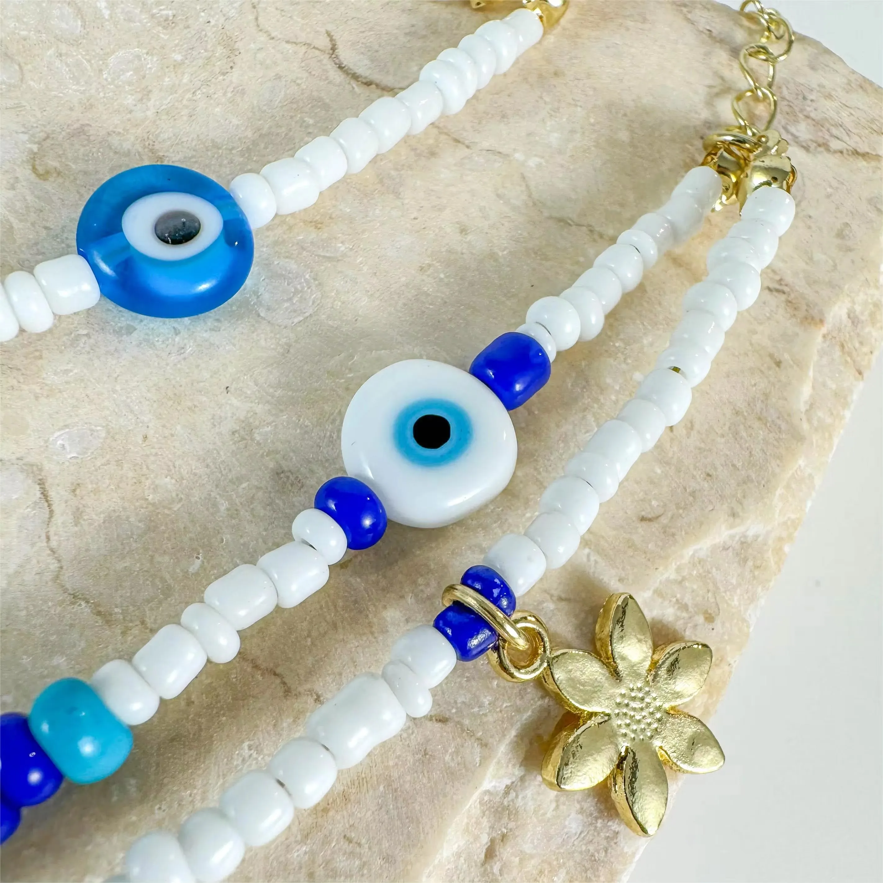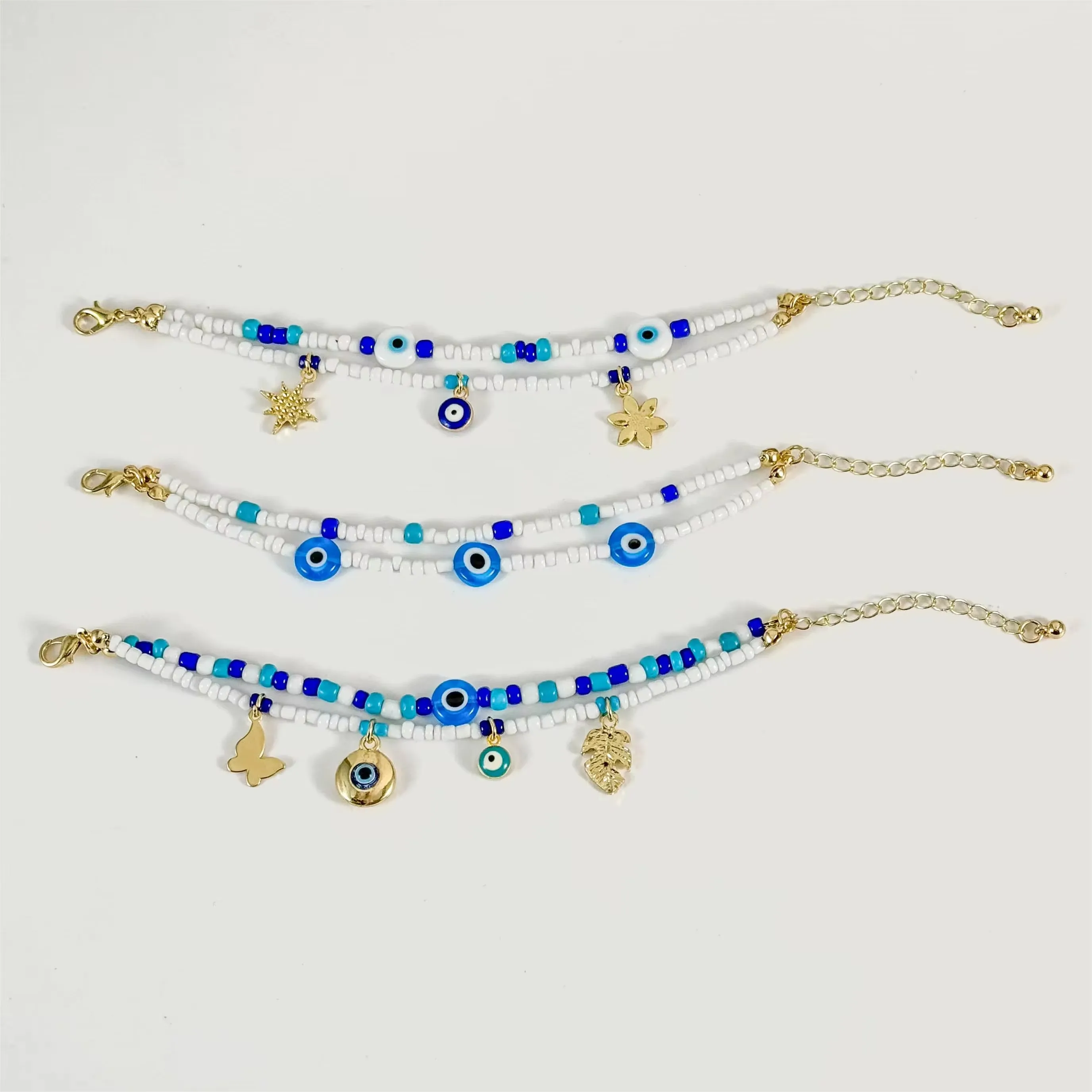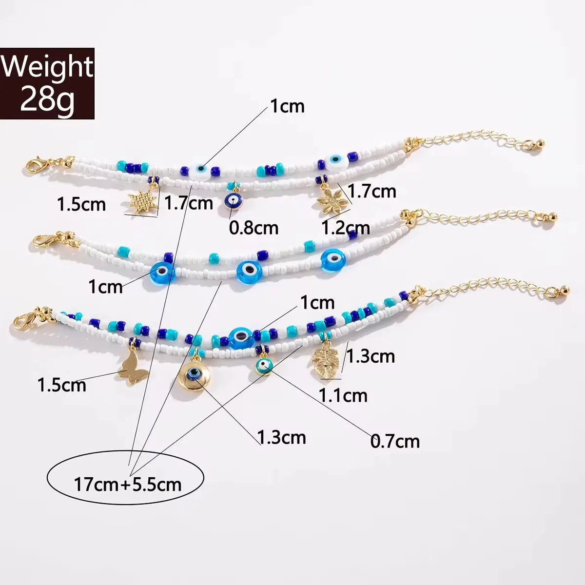 Fleepmart Trendy Eye Flower Bracelets for Women Tree Leaf Double Decker Measle Multilayer Bracelet Party Jewelry 3pcs/set
