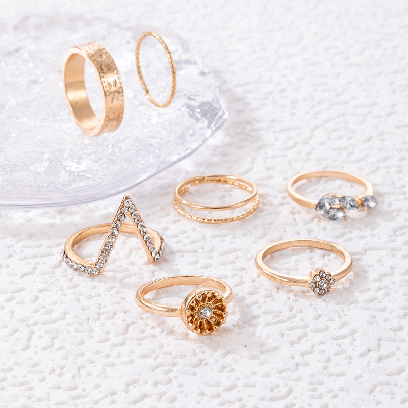 Fleepmart Trendy Flowers Bow-knot Joint Ring Sets Hollow Geometry Alloy Metal Rhinestone Adjustable Jewelry Women Men Anillo