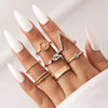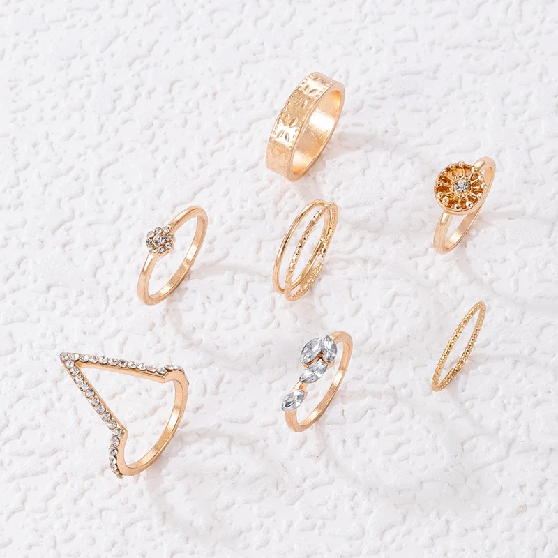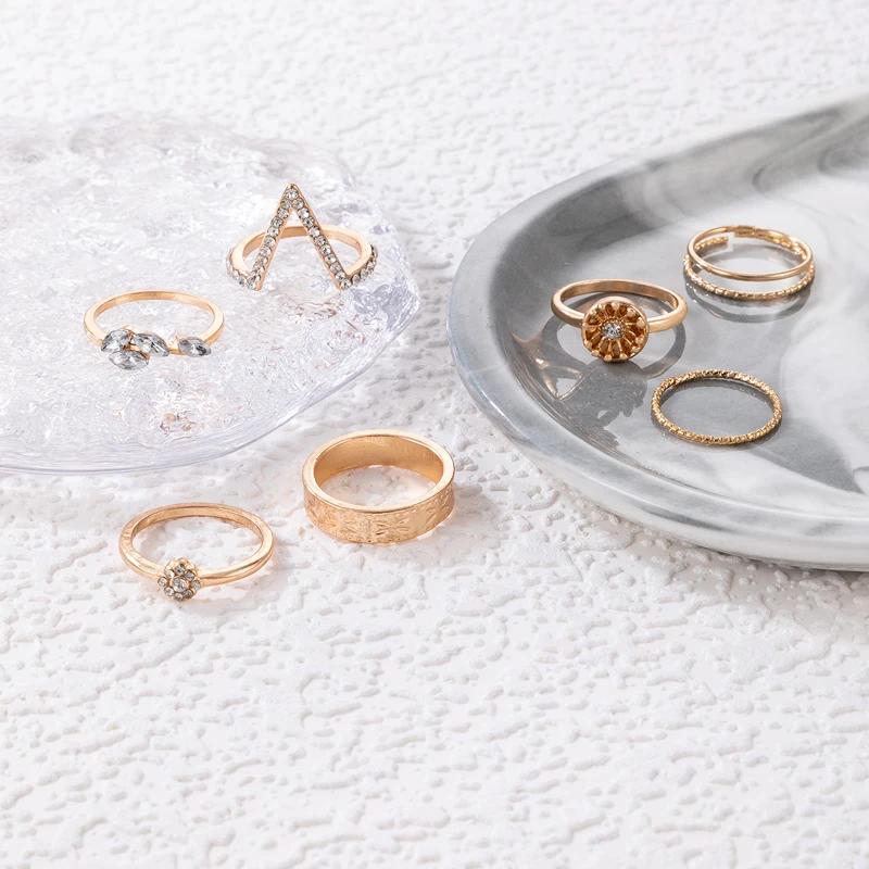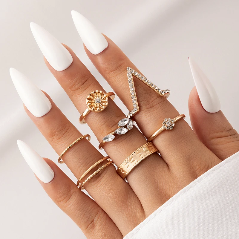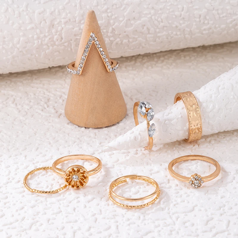 Fleepmart Trendy Flowers Bow-knot Joint Ring Sets Hollow Geometry Alloy Metal Rhinestone Adjustable Jewelry Women Men Anillo
