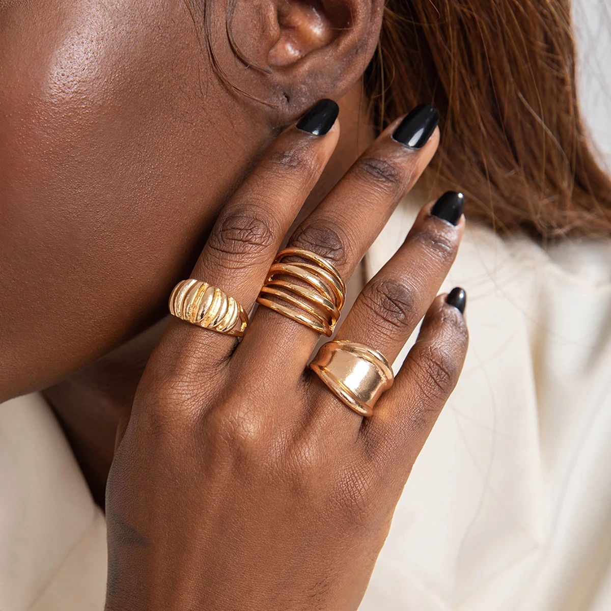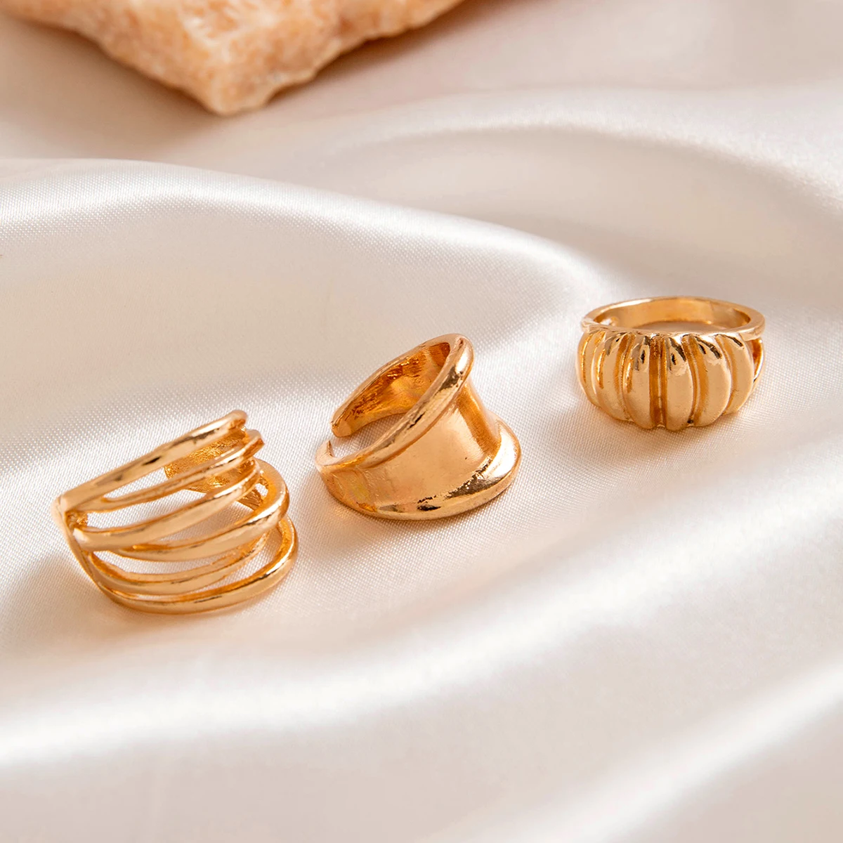 Fleepmart Trendy Irregular Gold Colour Flower Open Mouth Water droplets for Women Geometric Rings Jewelry Party Accessories