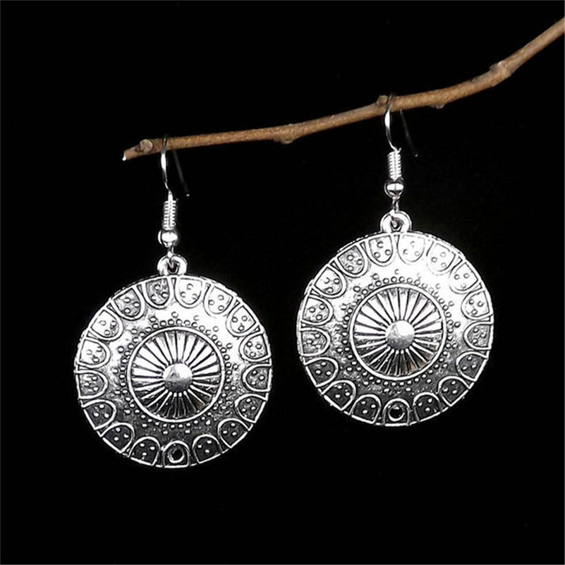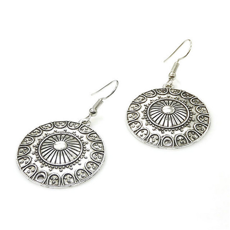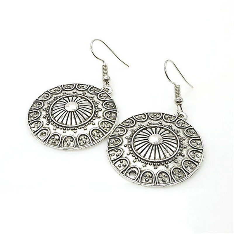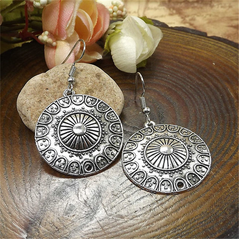 Fleepmart Trendy Jewelry Vintage Tibetan Sliver carving Round Drop Earring For Woman Retro Long Cheap Dangle Earrings Bohemian Accessories