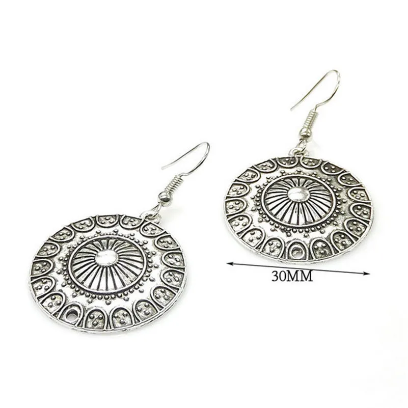 Fleepmart Trendy Jewelry Vintage Tibetan Sliver carving Round Drop Earring For Woman Retro Long Cheap Dangle Earrings Bohemian Accessories