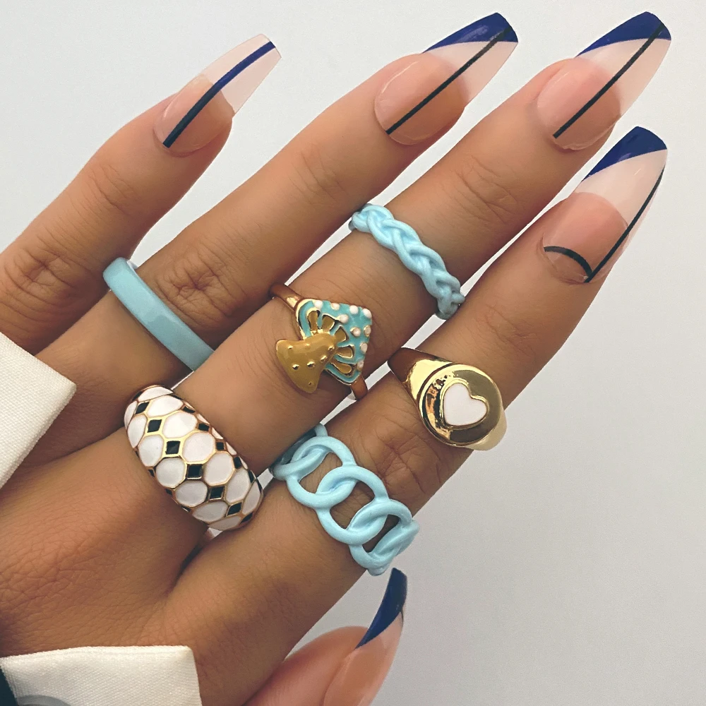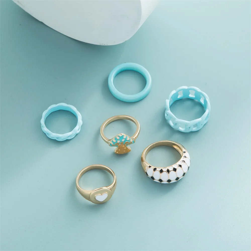 Fleepmart Trendy Korean Y2K Vintage Heart Enamel Ring for Women Dripping Oil Color Mushroom Metal Rings Couple Jewelry