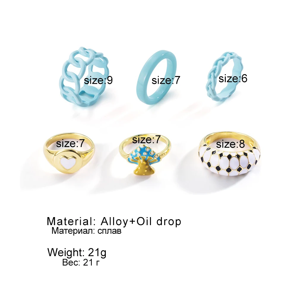 Fleepmart Trendy Korean Y2K Vintage Heart Enamel Ring for Women Dripping Oil Color Mushroom Metal Rings Couple Jewelry