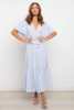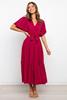 Fleepmart Trendy Solid Color Ruffles Long Dresses Women Sexy V-neck Ruffle Sleeves Leace-up Temperament Elegant Lady Dress 2024 Summer New