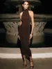 Fleepmart Turtleneck Backless Ruched Sexy Maxi Dress Women Brown Off-shoulder Backless Bodycon Club Party Long Dresses Female