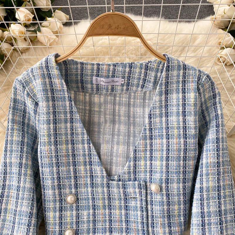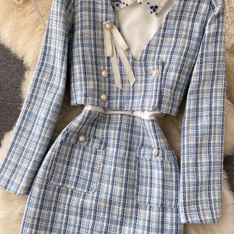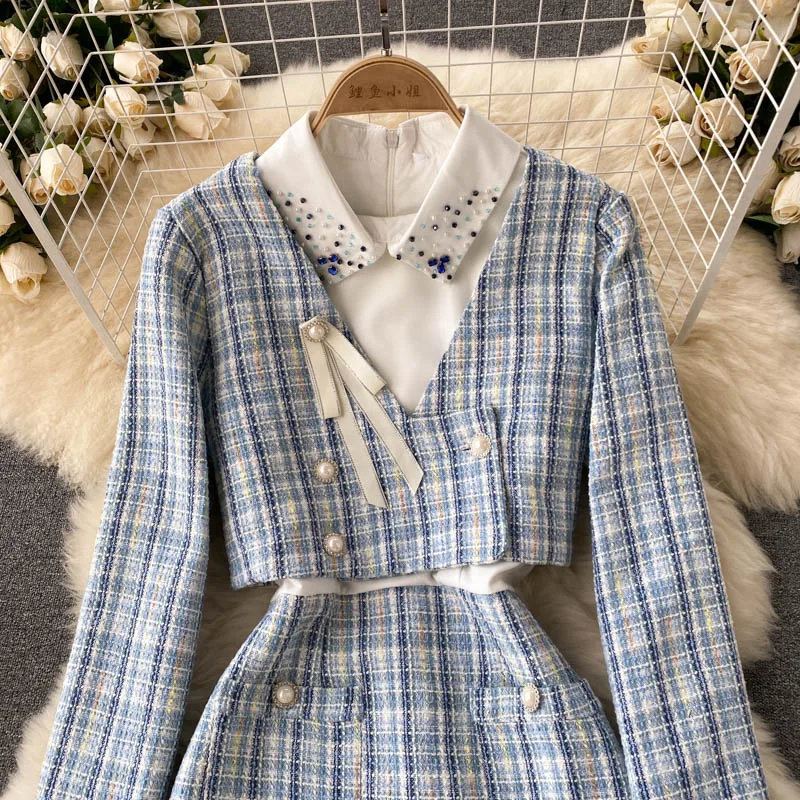 Fleepmart Two piece set Plaid lool sleeve Dress Fashion Vestidos Slim Party Club Summer Off Shoulder Hotsweet slip Dresses