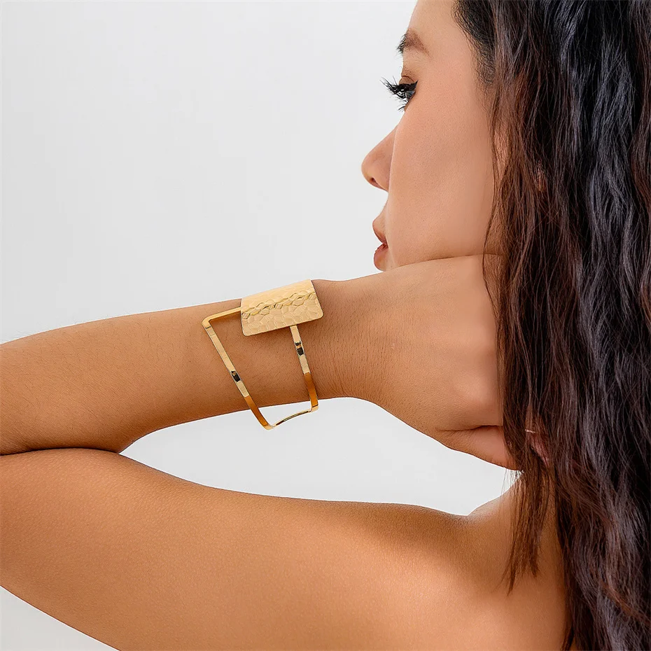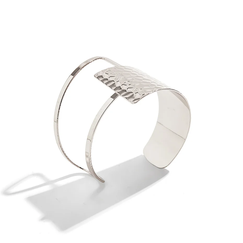 Fleepmart Unique Asymmetrical Punk Heavy Metal Cuff Open Bangles for Women Vintage Hollow Charm Bracelet Grunge Jewelry Steampunk Men New