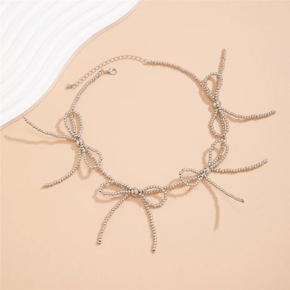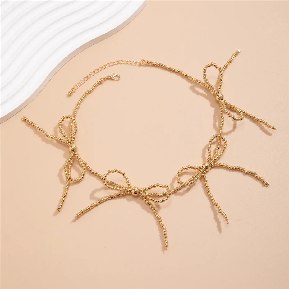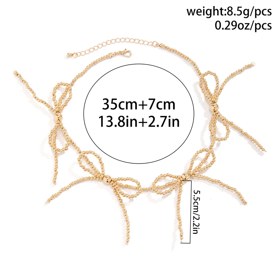 Fleepmart Unique Goth Small Ball Knotted Bowknot Adjustable Choker Necklace for Women Wed Brida Elegant Tassel Clavicle Chain Y2K Jewelry
