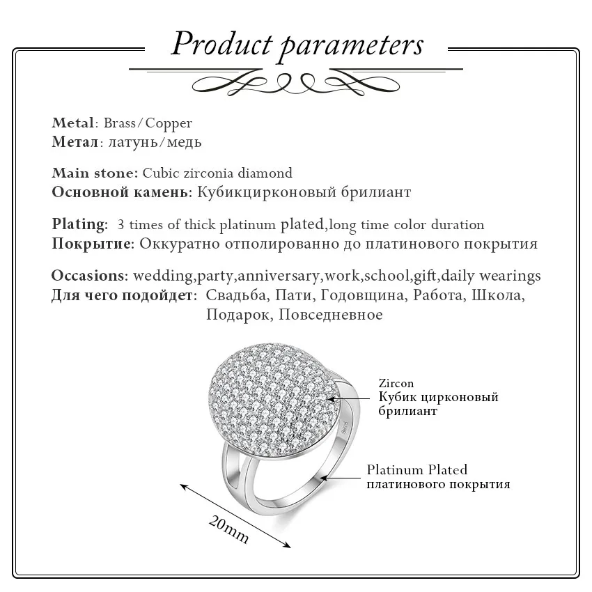 Fleepmart US STOCK 15%Off Big Round Silver Color Rings for Women Crystal Wedding Ring Jewellery Anillos Anel Bijouterie