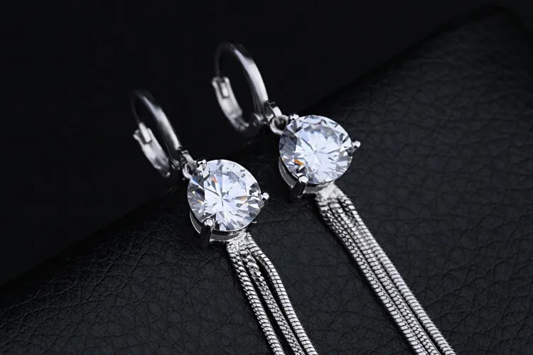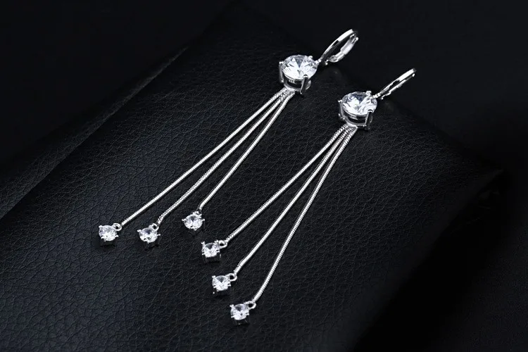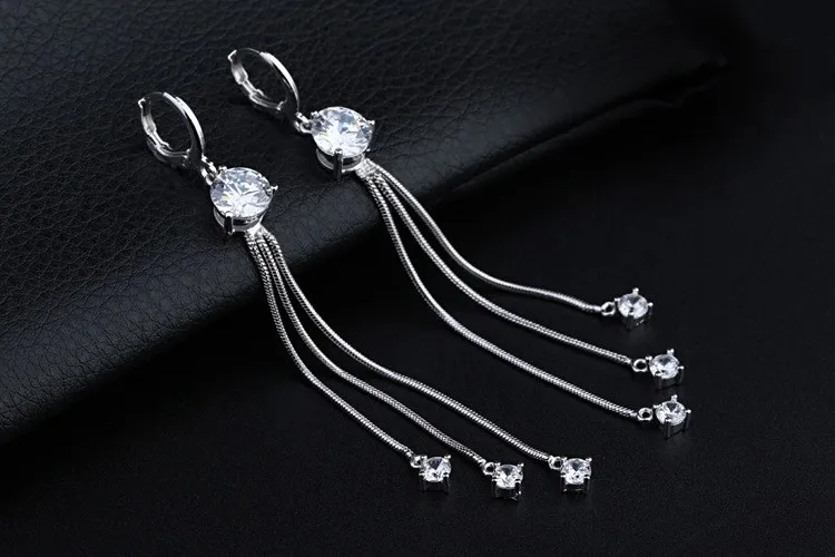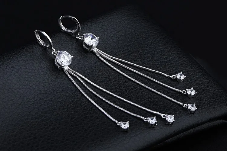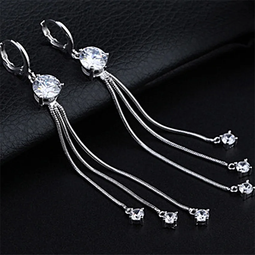 Fleepmart US STOCK 5% Off Wedding Tassel Earrings For Women Silver Long Earring with Stones Big Jewelry Bohemian Gifts