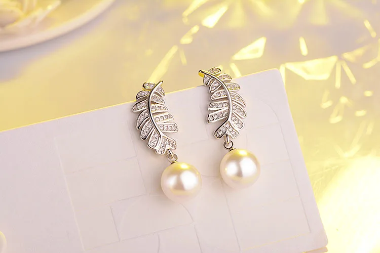 Fleepmart US STOCK Simulated Pearl Earrings for Women Stud Earings Silver Color Zirconia Cute Earring Orecchini