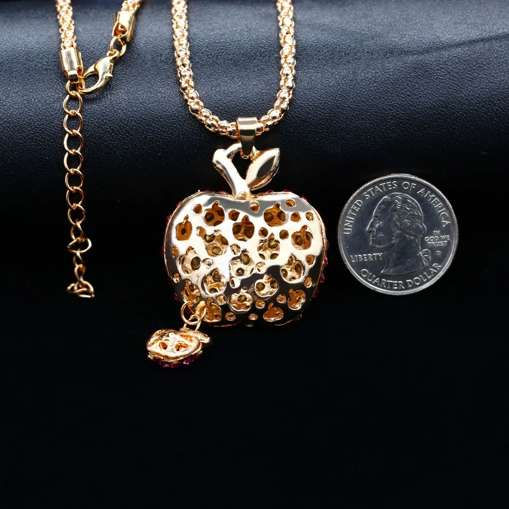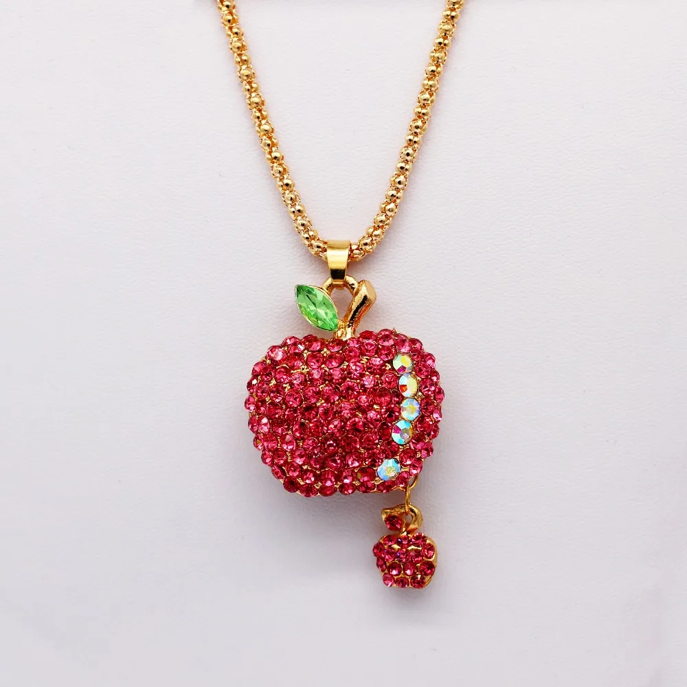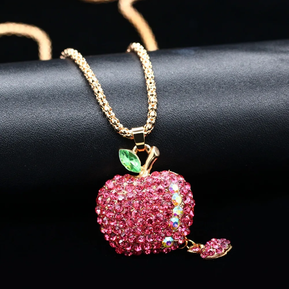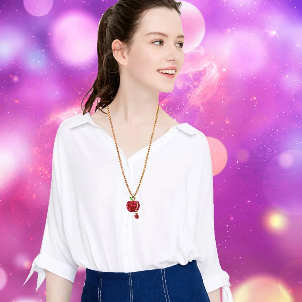 Fleepmart US STOCK Uloveido Women Hot Pink Bling Crystal Rhinestone Apple Pendant Sweater Chain Long Necklace Christmas Decoration