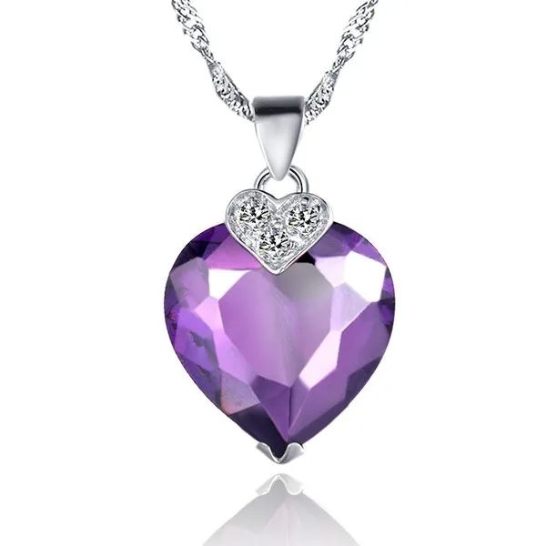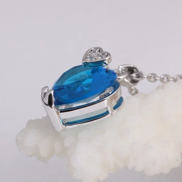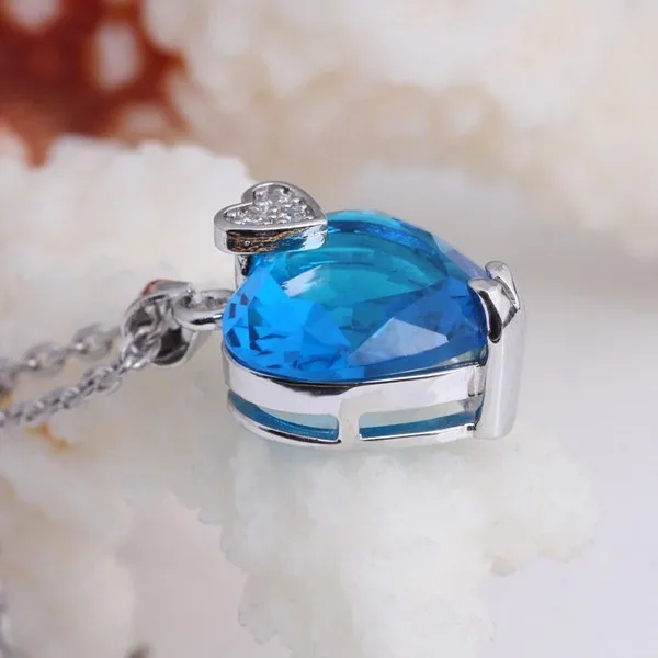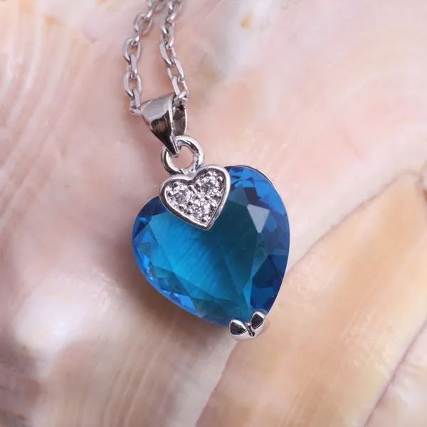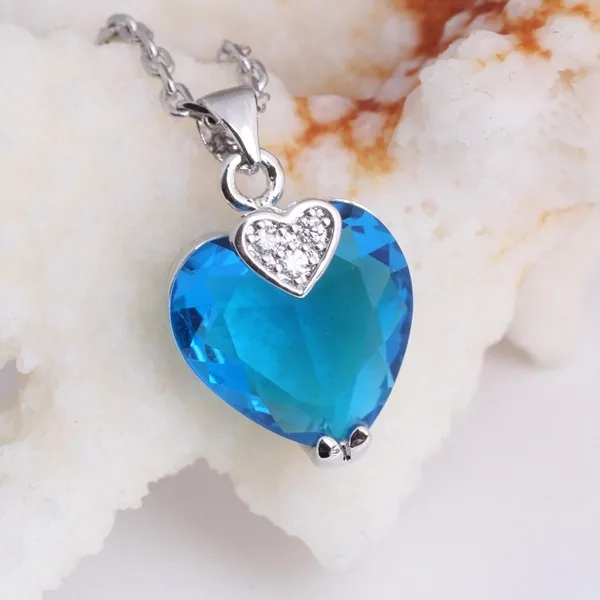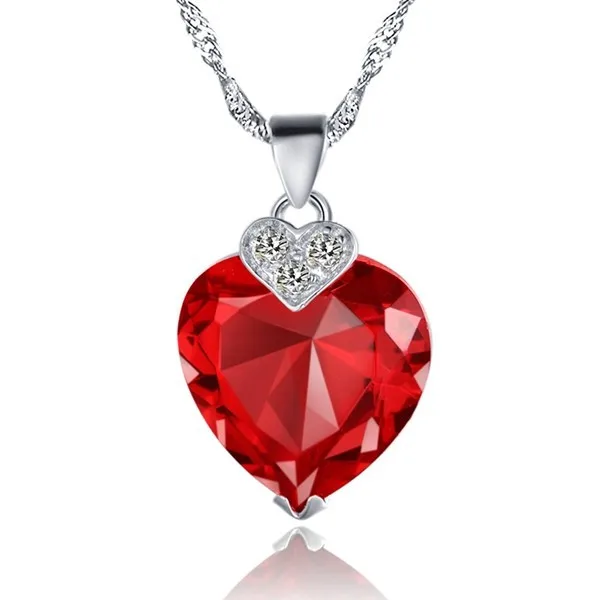 Fleepmart USA STOCK Uloveido Blue Love Heart Crystal Necklace for Women Cubic Zirconia Jewelry Red Pendants Silver Color Colares Gift