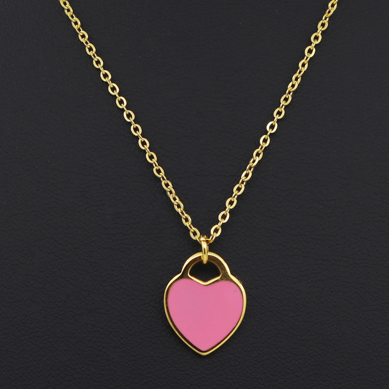 Fleepmart uxury Brand Enamel Jewelry Women Gift Gold/Rose Gold Silver Colour Choker Chain Stainless Steel Heart Necklaces Pendants