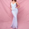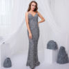 Fleepmart V Neck Backless Sleeveless Mermaid Maxi Dress Sexy Evening Party Long Gown Grey Pink