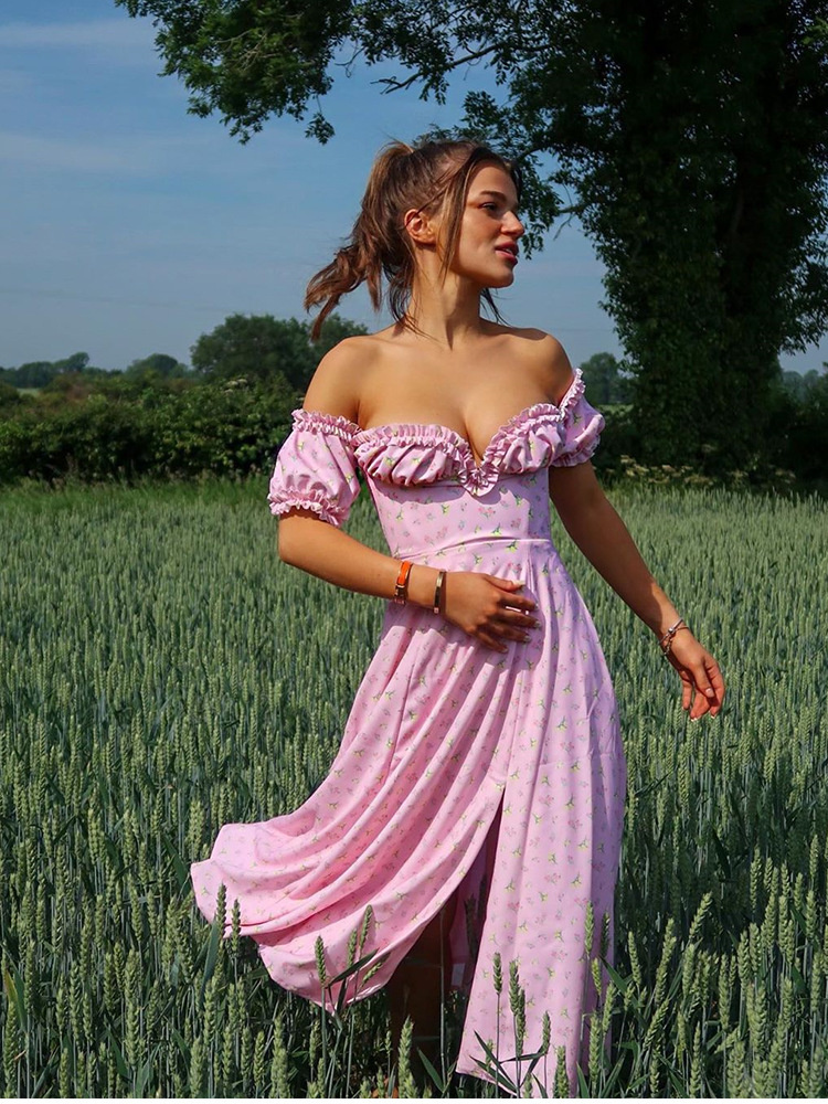 Fleepmart V Neck Floral Printed Short Sleeve Dress Clubwear Party Sexy Dresses For Women Long Spring Summer Dress Vestidos