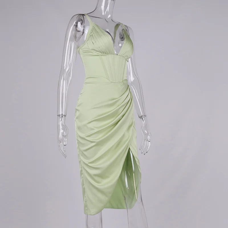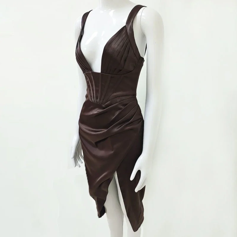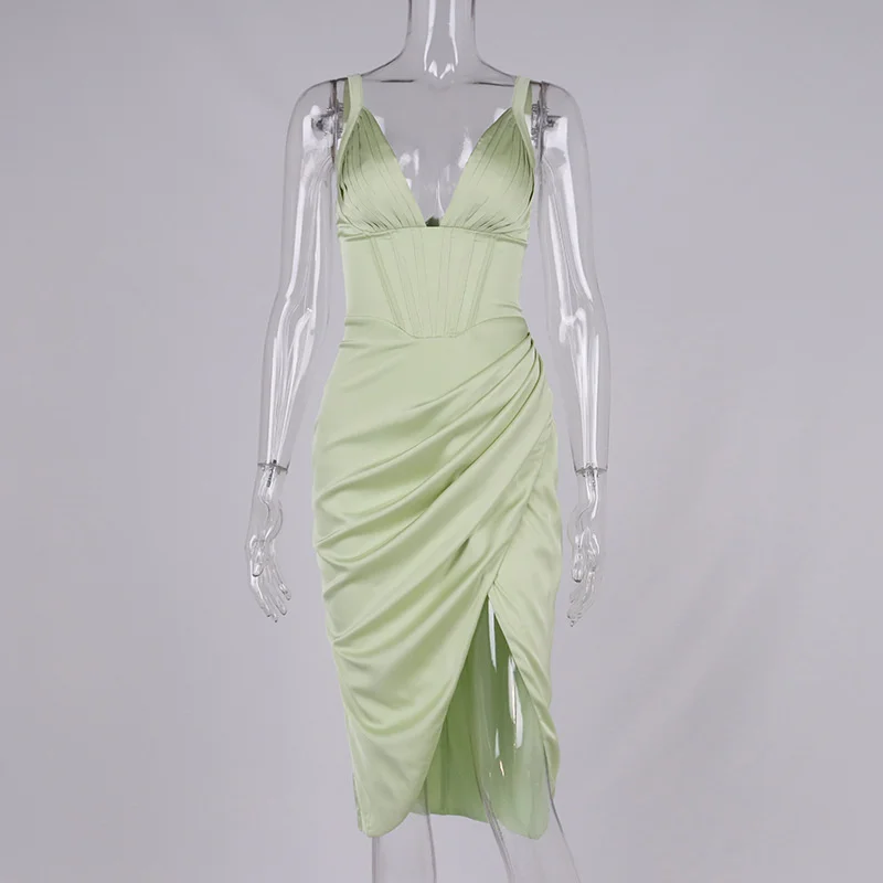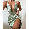 Fleepmart V Neck Night Club Bodycon Party Dresses Women Mini Summer Dress Vestidos Satin Spaghetti Strap Sexy Nightclub Dress