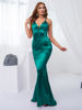 Fleepmart V Neck Pleated Satin Summer Dress Sleeveless Ruched Stretch Backless Cross Straps Mermaid Evening Long Night Party Dress