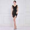 Fleepmart V Neck Short Black Sequin Party Bodycon Dress Women Sexy Beading Evening Dress 2022 New
