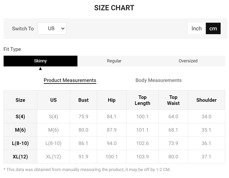 Note: There might be 2-3% difference according to manual measurement. Please check the measurement chart carefully before you buy the item. +Please note that slight color difference should be acceptable due to the light and screen.